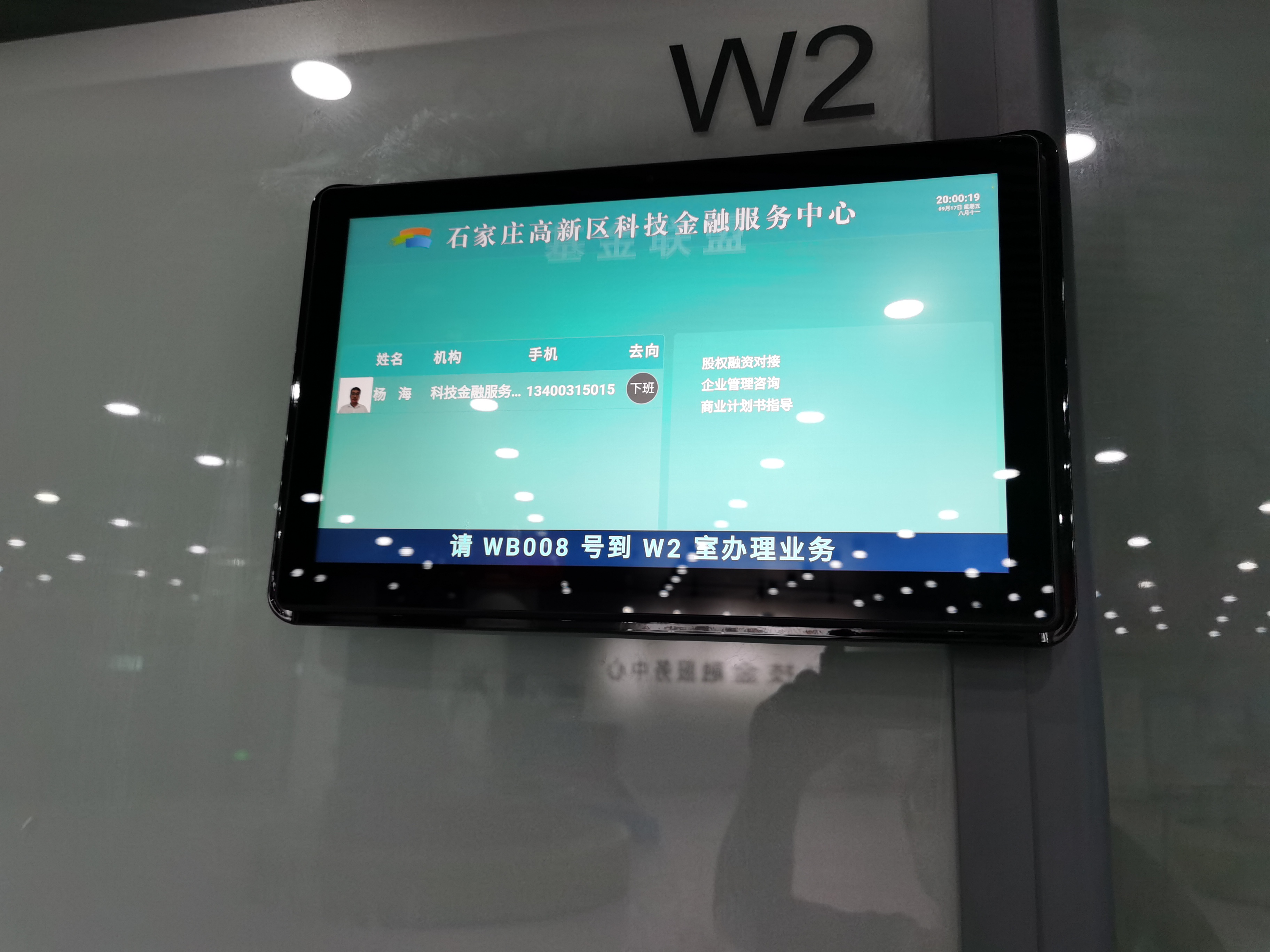 石家庄高新区科技金融服务中心智能化提升工程立足于智能化、高效化和信息化,通过配备LED全彩触摸屏、叫号机、考勤机、办事指南展示机、楼层索引机等智能化设备,建立了一套完整的信息动态公示平台,可实现3D智能导引、智能排队、离台评价等功能。其中大厅一楼增设的86寸触摸屏,可展示中心服务职能、服务人员去向、办事流程等信息,办事群众通过触摸屏的功能模块可对科技金融服务中心的各项服务进行全面了解,让每一个企业和群众办事更快捷,体验更舒适。