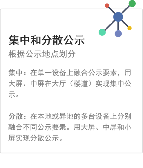 作为一体化解决方案的倡导者和引导者,西朗科技为各种不同需求的单位提供不同应用层级的动态公示产品支撑。